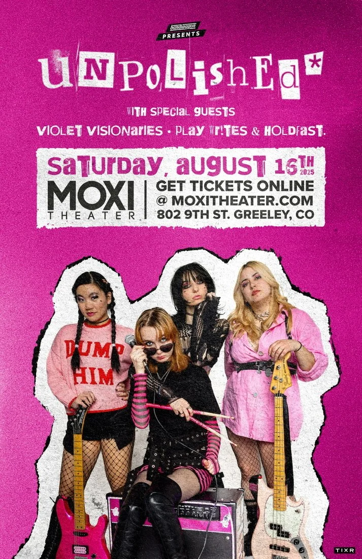 unpolished* travels to Greely, CO to headline the Moxi Theater featuring Play Wr!tes, Violet Visionaries, and Hold Fast. All ages, 8pm. Tickets available online here.