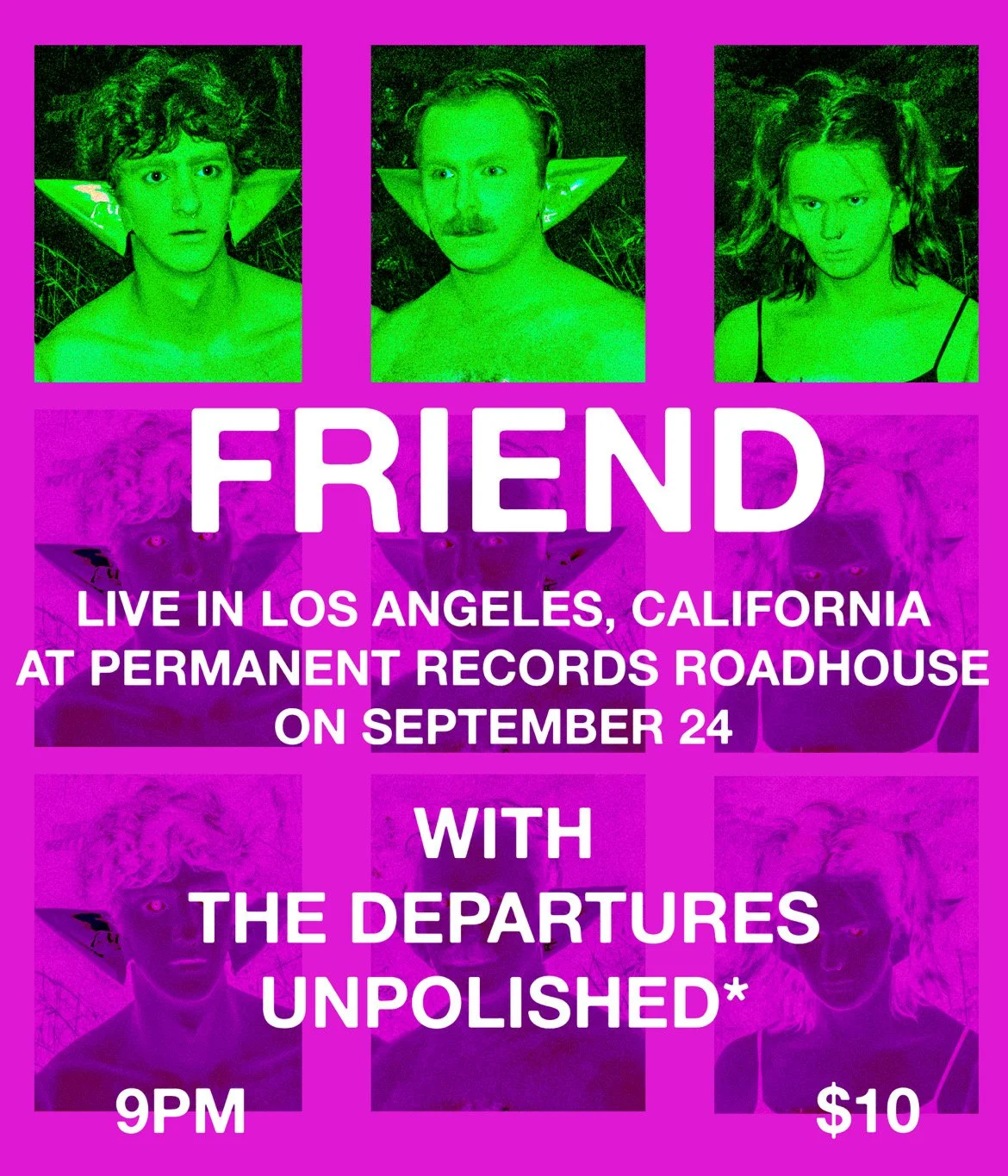unpolished* is opening for Philadephia band FRIEND at their tour stop in Los Angeles at Permanent Records Roadhouse. $10 entry (eventbrite link here).