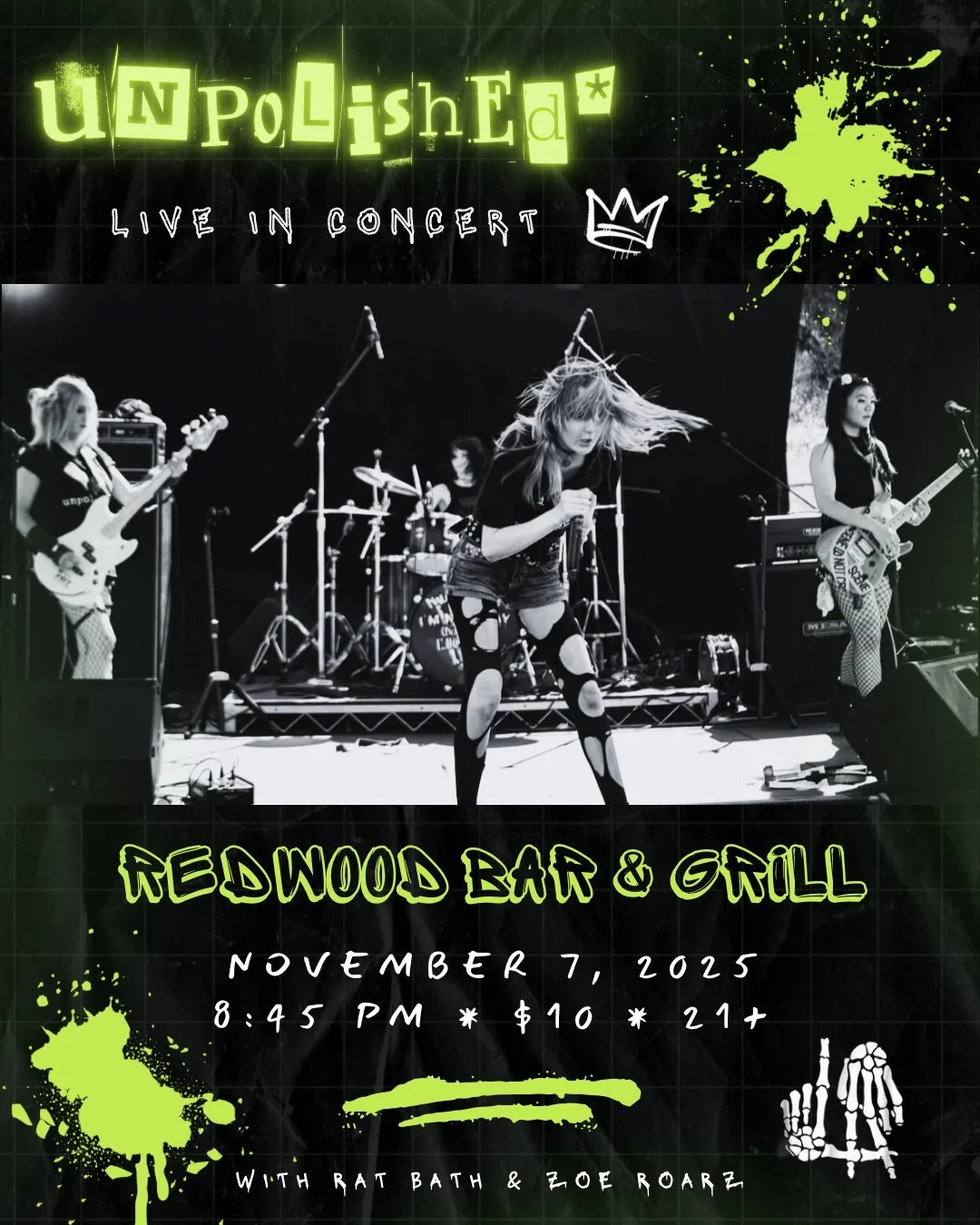 unpolished* will be playing in support of Rat Bath on their tour stop in Los Angeles at Redwood Bar & Grill. 6pm doors, 8:45pm set, $10 cover. 18+ only.